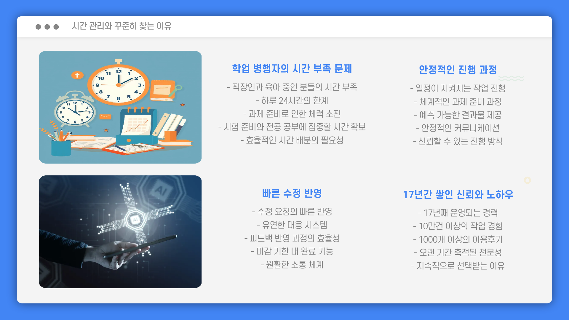 여러 이용자들의 이야기를 보면 공통적으로 언급되는 부분이 있다. 바로 안정적인 진행 과정이다. 일정이 지켜지고 수정 요청도 비교적 빠르게 반영된다는 점이다. 물론 사람마다 경험은 다르겠지만, 오랜 기간 운영되며 쌓인 노하우가 이런 부분에서 차이를 만든다고 생각한다. 그래서인지 레포트대행을 찾는 분들 사이에서 꾸준히 언급되는 곳이기도 하다.